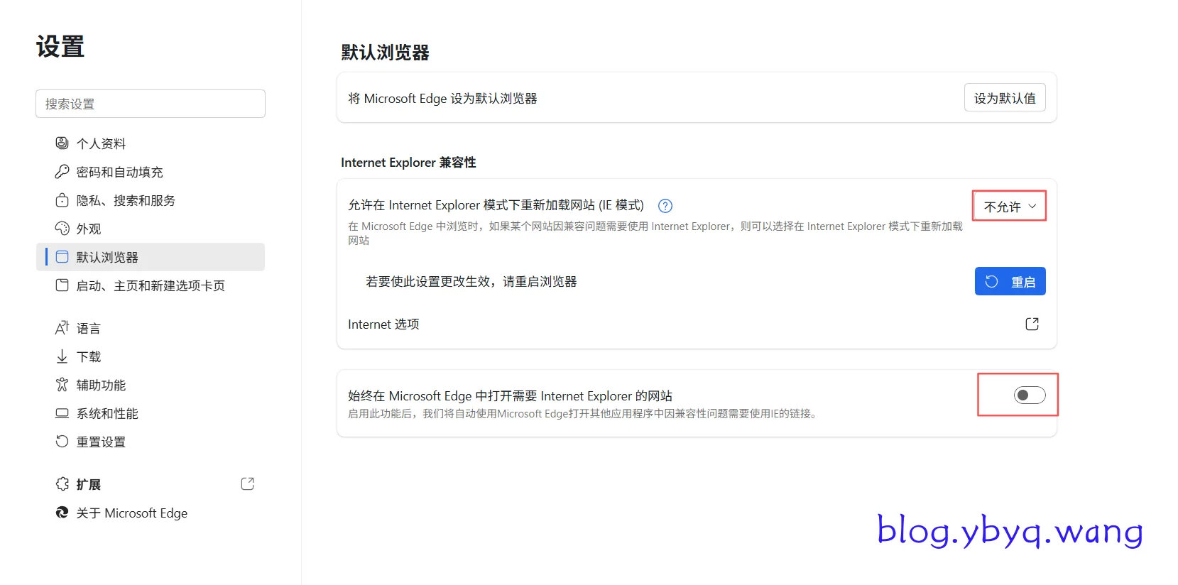 启用第三方浏览器扩展。 - Edge 浏览器设置:在 Edge 设置中,将“允许在 Internet Explorer 模式下重新加载网站 (IE 模式)”设为