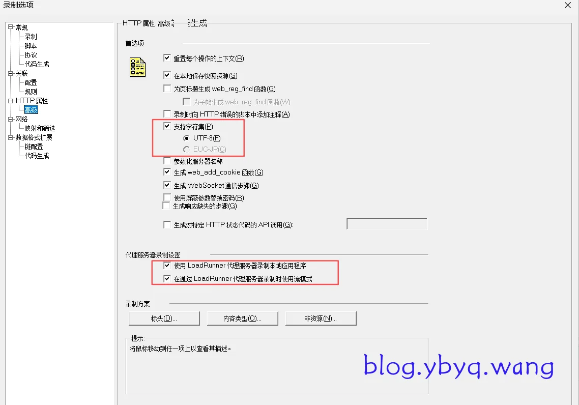 - 在 Recording Options 中,进入 HTTP Properties -> Advanced。